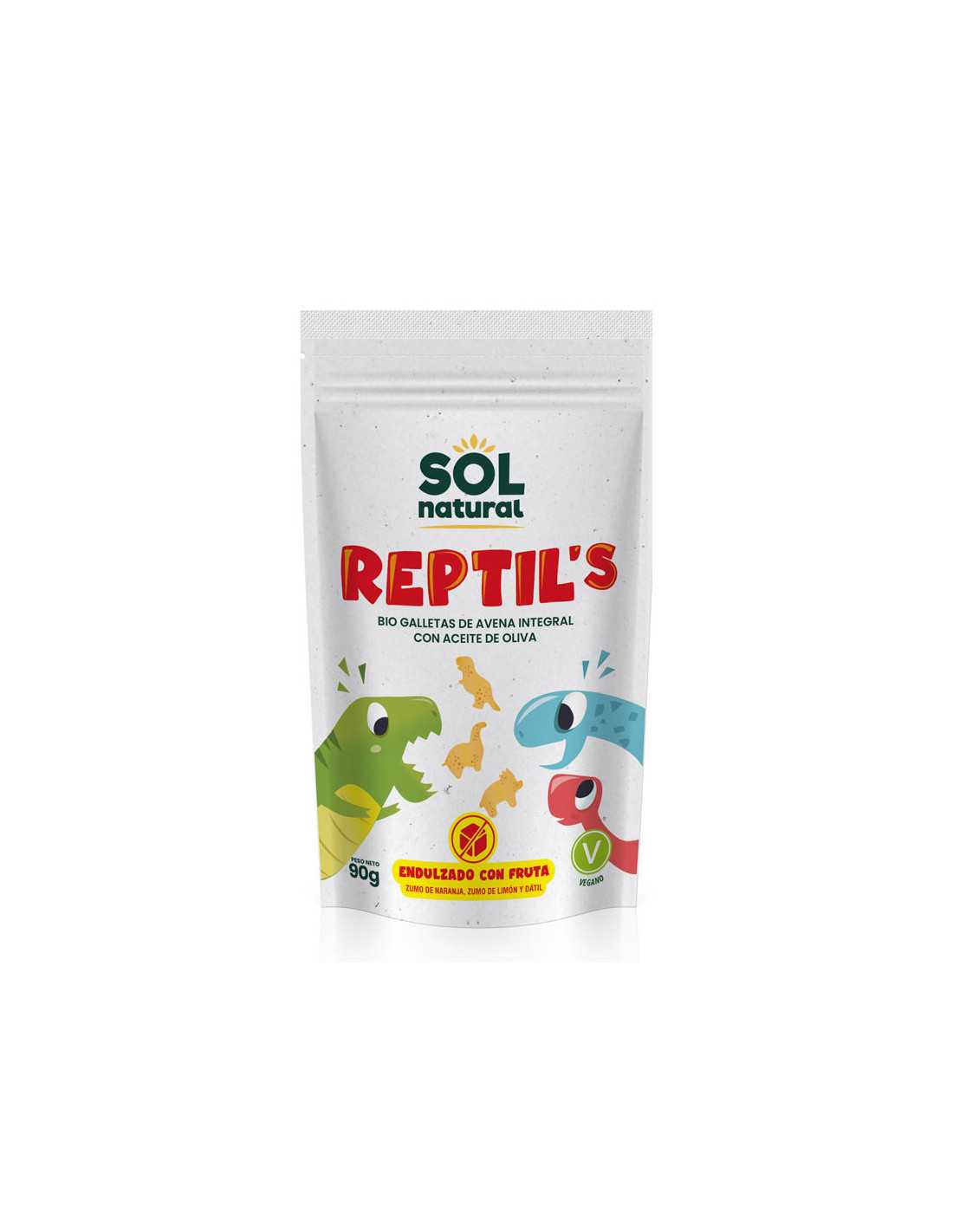 Galletas de Avena integral y fruta REPTIL'S (forma de dinosaurios) bio 90g Sol Natural