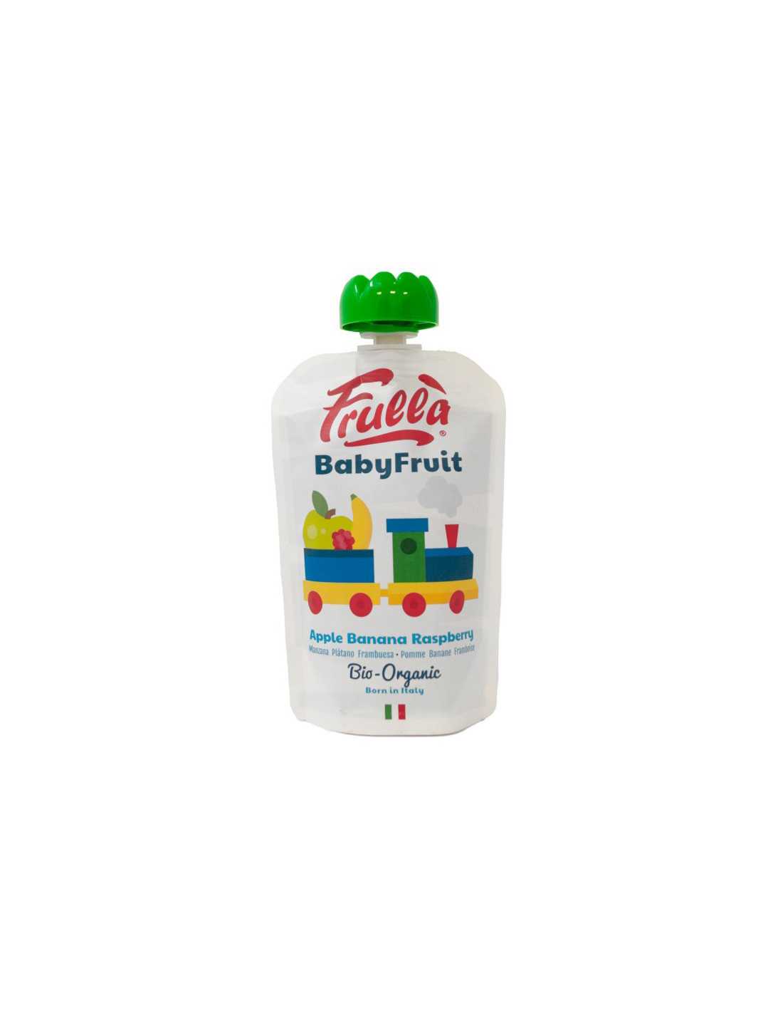 FrullaPuré Manzana, Plátano y Frambuesa bio (caja 10u) Baby 100g Frulla