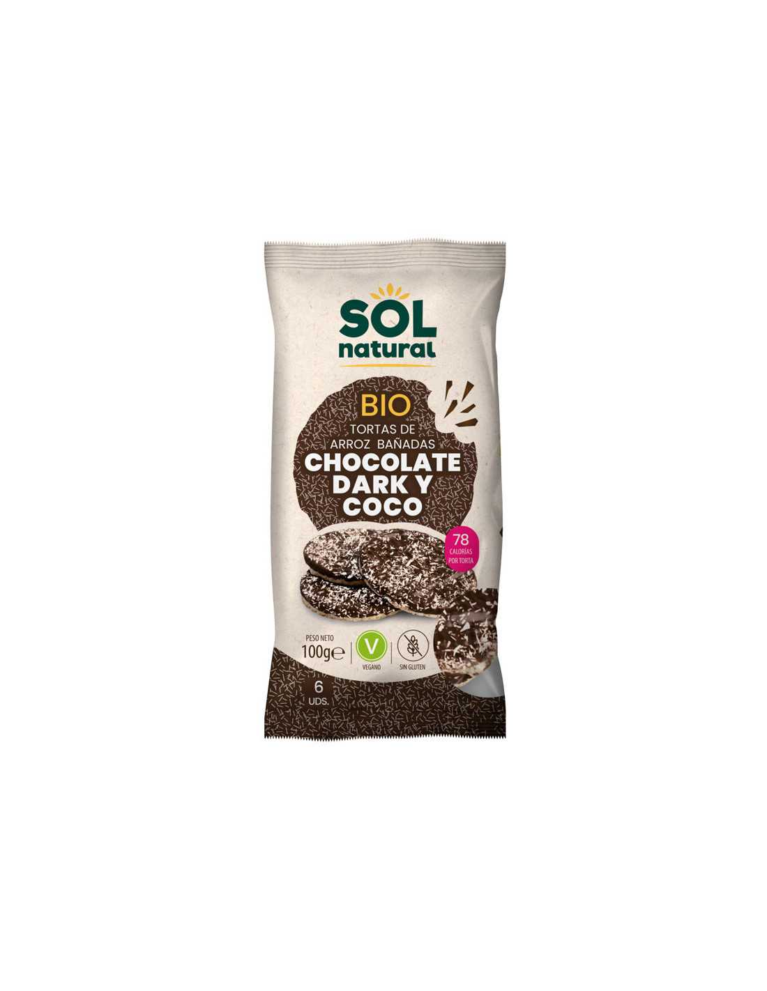Sol NaturalTORTITAS DE ARROZ CHOCOLATE DARK Y COCO BIO 100G SOL NATURAL