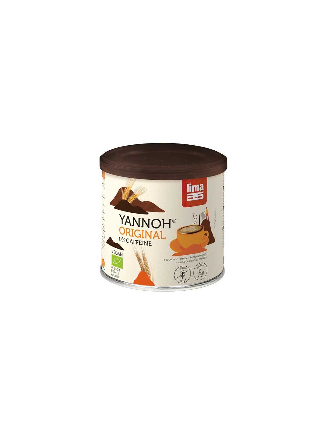 Yannoh Lima Es una deliciosa bebida hecha de granos tostados (cebada y centeno), con achicoria y bellotas. Debido a que los granos se tuestan a baja temperatura, Yannoh® Instant tiene un sabor suave. Yannoh Instantaneo no contiene gluten, ya que el gluten se extrae durante el proceso de producción. Yannoh es una ideal alternativa al café. Es una deliciosa bebida sin cafeína.