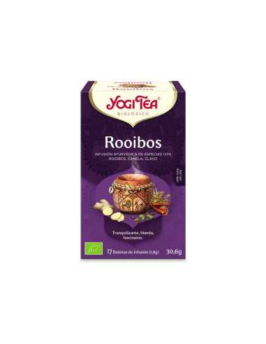 Dulce, cálido y soleado. El Rooibos tiene sus raíces en el folclore africano. La suma de las tradicionales especias YOGI TEA®, la canela, el jengibre, el cardamomo, el clavo y la pizca de pimienta negra, da vida a su suave rooibos, terrosa aroma, mientras que el algarrobo y la vainilla redondean el sabor de esta agradable infusión. La esencia de esta infusión es: ?Surgido del abrazo de la Madre Tierra?.rooibos*, canela*, jengibre*, algarroba*, achicoria tostada*, cardamomo*, clavos*, pimienta negra*, aceite de canela*, aceite de jengibre*, aceite de cardamomo*, extracto de vainilla*