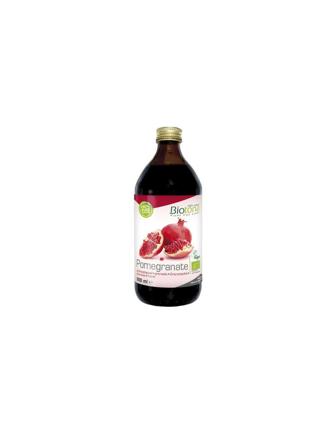 Punica granatum: La granada es una fruta cultivada desde la antigüedad originaria del Himalaya y del norte de la India, extendiéndose por todo el bajo Mediterráneo. Este jugoso fruto puede contener hasta 400 semillas por fruto y en el jugo concentrado de Granada de Biotona puedes encontrar el extracto 5 veces más concentrado. Dando como resultado un jugo delicioso parecido a un sirope. Es excelente para mezclarlo con agua natural o con gas y beberlo como bebida refrescante.