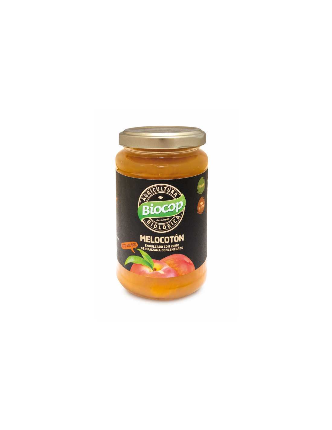 Melocotones* (65%), zumo de manzana concentrado* (39,5%), puré de manzana*, gelificante: pectina, corrector de acidez: ácido cítrico. *Procedente de agricultura biológica.