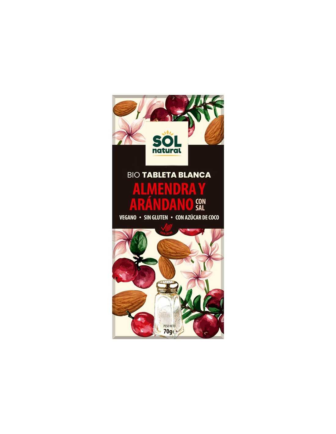 Tableta chocolate blanco almendra salada y arandano bio 70g Sol Natural