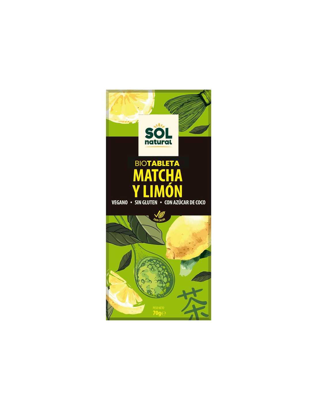 Sol NaturalCHOCOLATE MATCHA Y LIMÓN BIO BIO 70 G SOL NATURAL