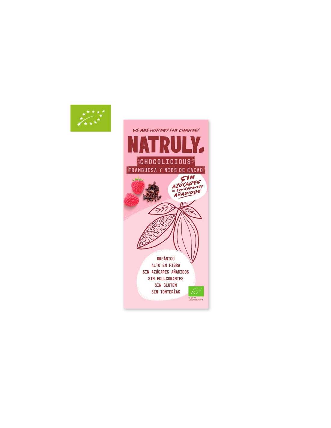 NatrulyTableta de Chocolate con Frambuesa y nibs de Cacao BIO 85g Natruly