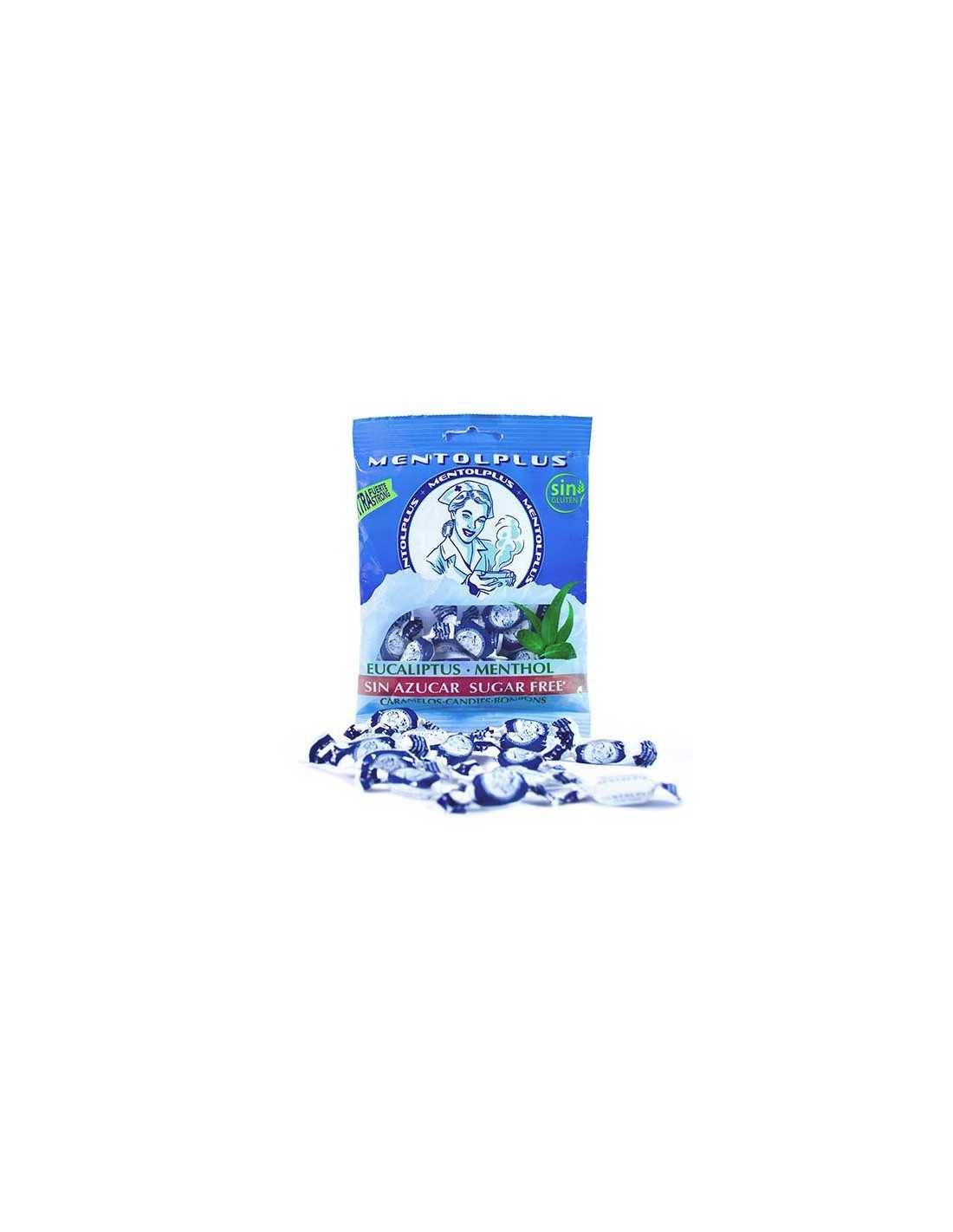 Caramelos mentolados sin azúcar sabor eucalipto, con edulcorantes.