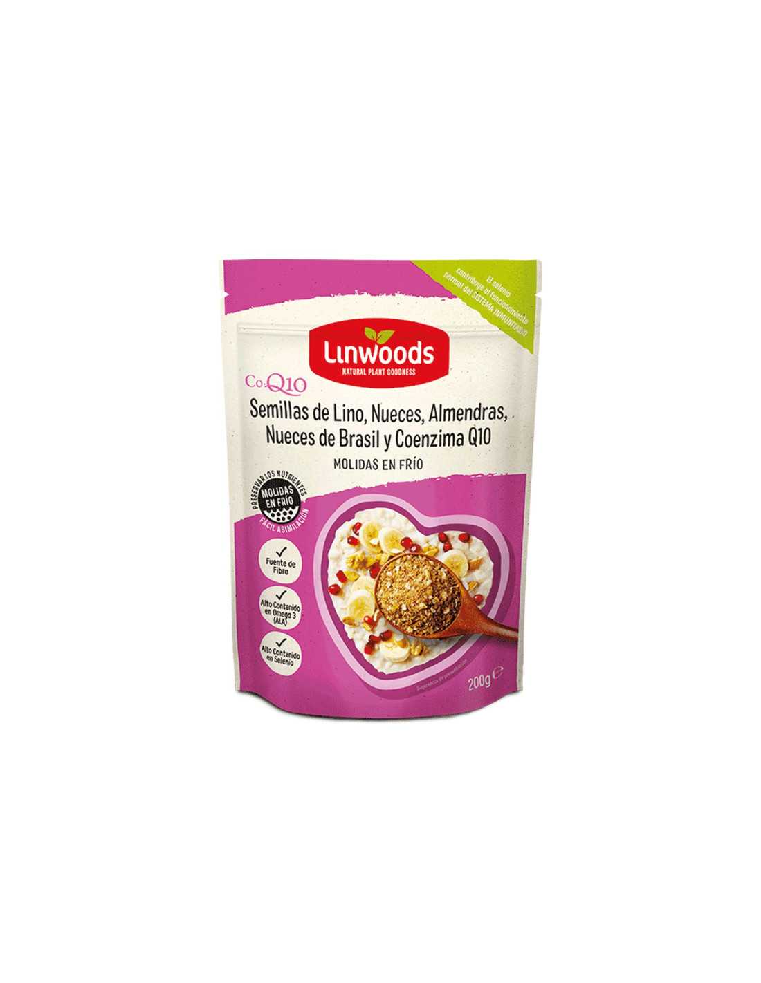 Semillas de Lino, Nueces, Almendras, Nueces de Brasil y Coencima Q10 Molidas 200g Linwoods