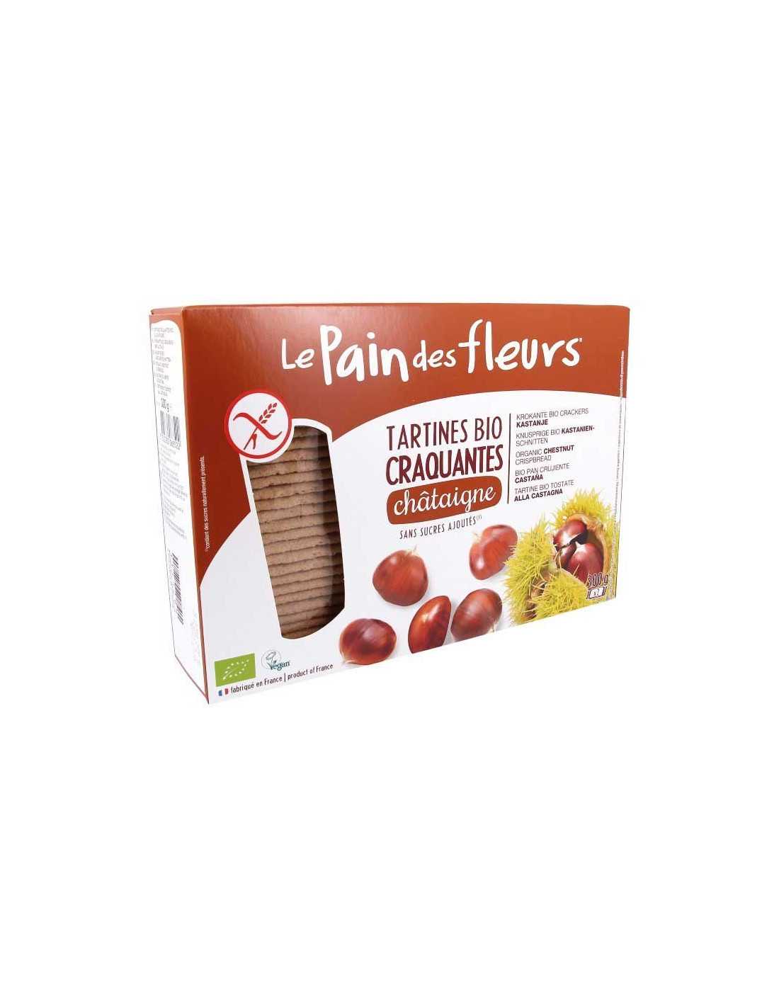 Los crackers de Le Pain Des Fleurs, son unas tostas crujientes hechas a partir de harina de castaña. Resultan ser una rica fuente de fibra, sin azúcares añadidos. Por su naturaleza, los crackers de castaña no contienen gluten.