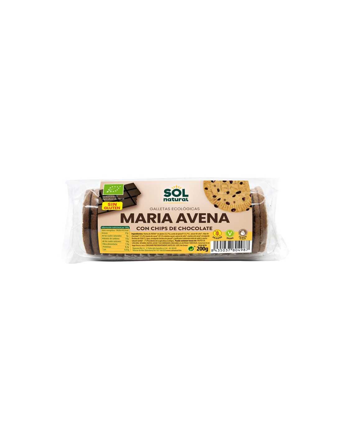 Galletas Maria de Avena con chips chocolate sin gluten bio 200g Sol Natural