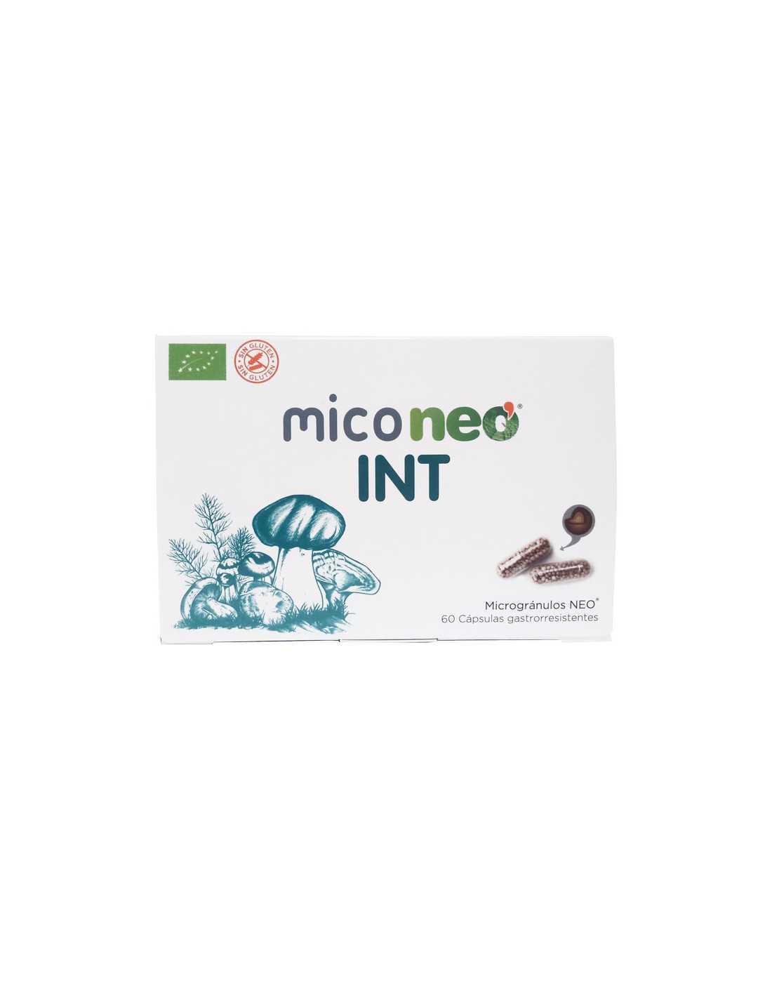 Achicoria, Shiitake, Melena de León, Seta de CardoMico Neo INT se obtiene a partir de extractos puros de hongos de producción ecológica, de producción ecológica, libre de maltodextrinas y alérgenos. Se presenta en cápsulas gastroresistentes, que permiten proteger los activos del hongo del medio ácido, además de mejorar su biodisponibilidad gracias a la galénica en microgránulo, una avanzada tecnología que optimiza, protege y modula la liberación de los principios activos.En su fabricación, se incorpora vitamina C natural, obtenida de la especie Camu Camu (Myrciaria dubia), en la cubierta exterior del microgránulo. Gracias a ello, la vitamina C se libera inmediatamente antes que los activos del hongo, de manera que se favorece la absorción de los polisacáridos y optimiza su acción fisiológica.Según las últimas investigaciones se sabe que hay más de 400 especies de bacterias distintas en el sistema digestivo y que cada individuo posee una combinación única e intransferible de estas mismas. Mico Neo INT posee una gran cantidad de enzimas como la lactasa que mejora la digestión y la asimilación de los beta-(1-3)glucanos de alto peso molecular, aminoácidos esenciales y no esneciales, esteroles (lovastina) y fibras como las lectinas (con función prebiótica), ácidos grasos y ericenonas que fortalecen y regeneran el nervio del plexo intestinal, además de actuar directamente sonre el sistema nervioso aumenta la flora autóctona sin introducir cepas nuevas. Es una fórmula especialmente diseñada para el mantenimiento del sistema digestivo y para conseguir una salud óptima de la biota bacteriana incluso en casos de intolerancias como la celiaquia o tras tratamientos con antiobióticos. Es útil como prebiótico (recupera la flora bacteriana y las mucosas), para el síndrome de permeabilidad intestinal (SPM), las intolerancias alimentarias, las colitis y flatulencias, el viente hinchado o diferentes tipos de dermatitis.Ingredientes por cápsula:
