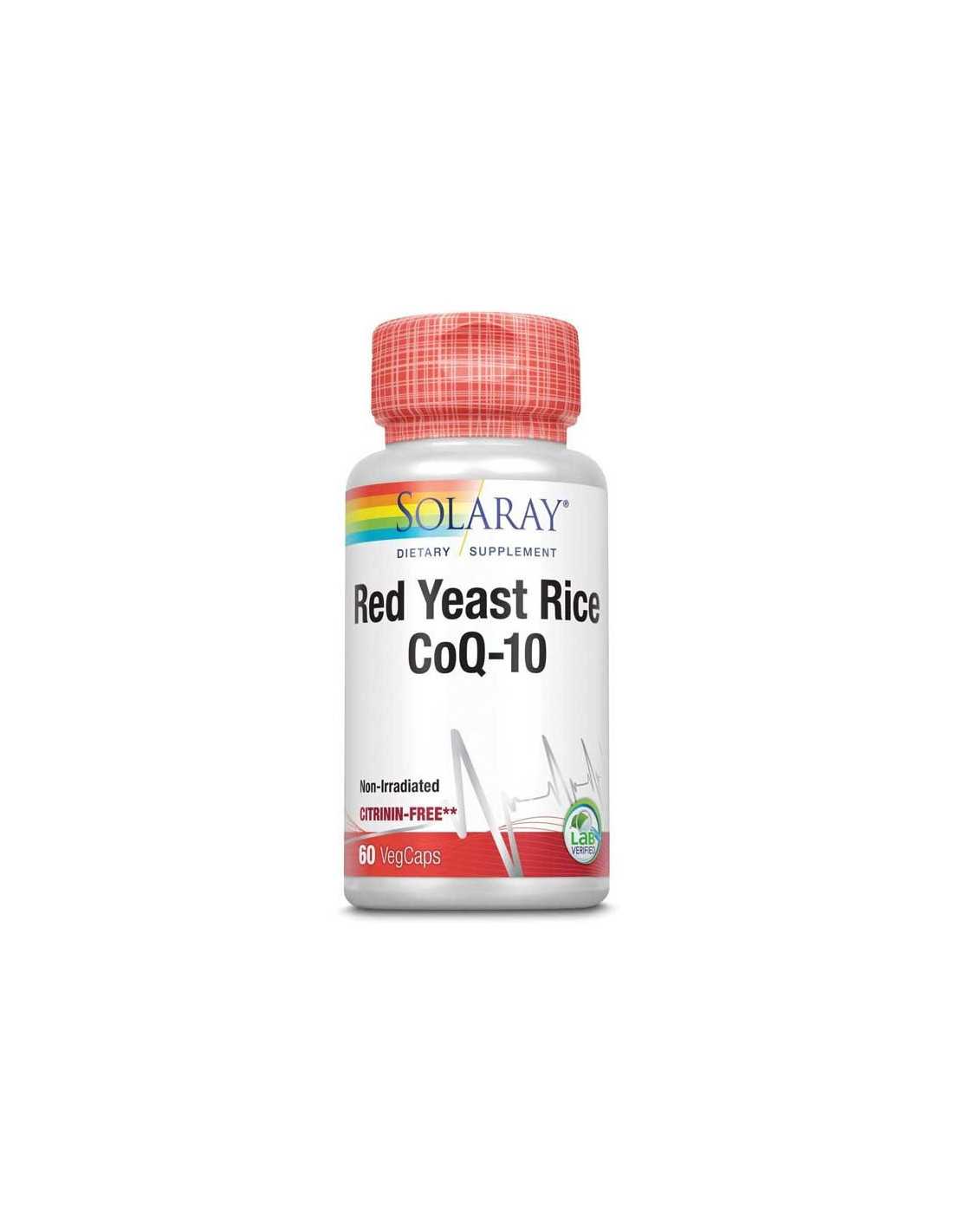Producida naturalmente en su cuerpo, la coenzima Q-10 (CoQ-10) es un antioxidante que sus células usan para el crecimiento y mantenimiento y puede ayudar a mantener un rendimiento físico saludable y resistencia. Solaray Red Yeast Rice Plus CoQ-10 no está irradiado y está etiquetado como libre de citrinina, lo que indica que se detectó menos de 1 ppm usando UPLC-MS.