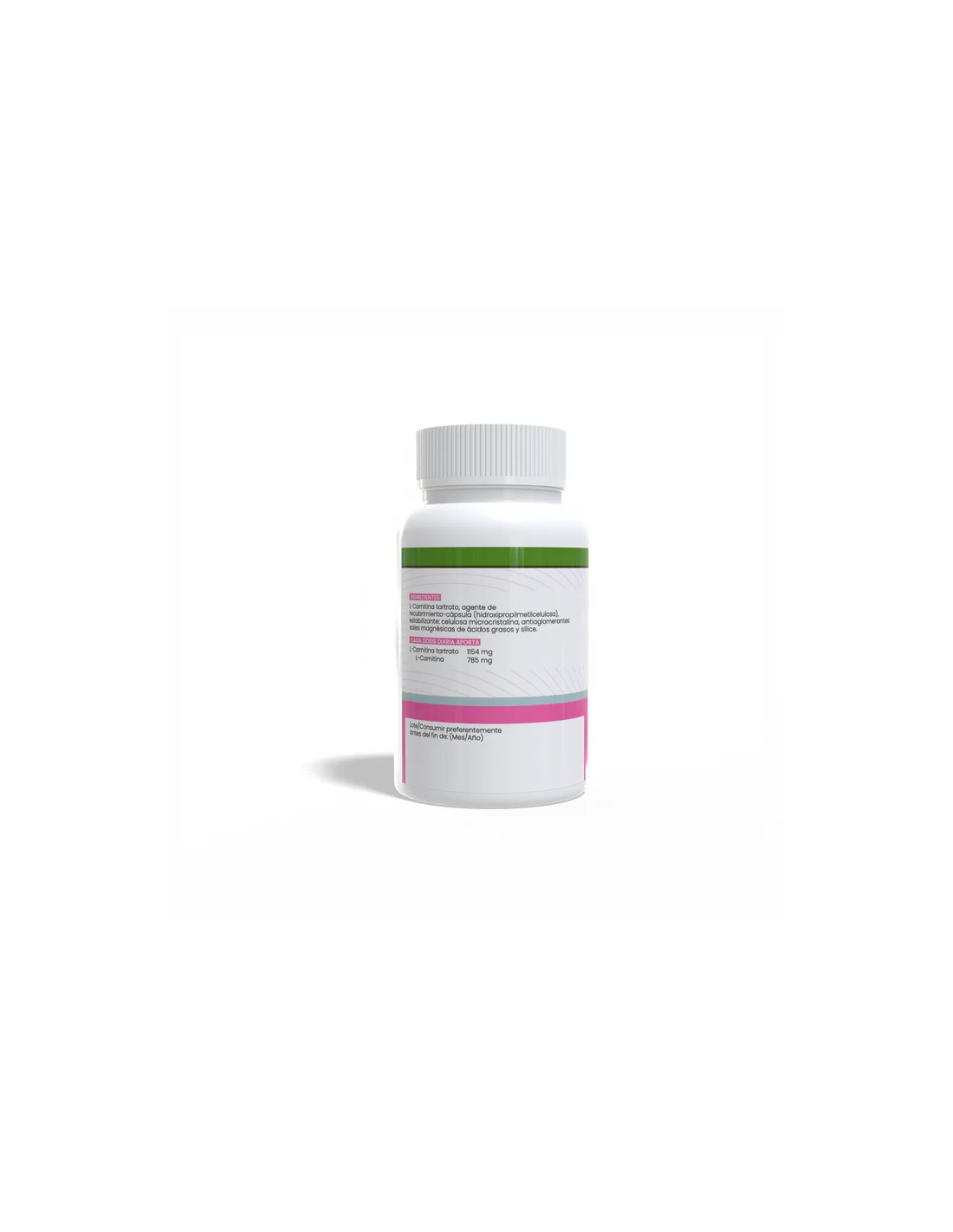 L-Carnitina tartrato, agente de recubrimiento: cápsula (hidroxipropilmetilcelulosa), estabilizante: celulosa microcristalina, antiaglomerante: sales magnésicas de ácidos grasos y sílice.