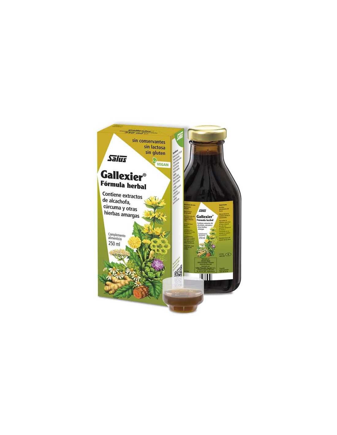 - Adultos: tomar 20 ml antes de las comidas como aperitivo o después de ellas. Se aconseja tomar Gallexier regularmente. Diluido en agua y bebido durante el día, actúa como un eficaz depurativo.