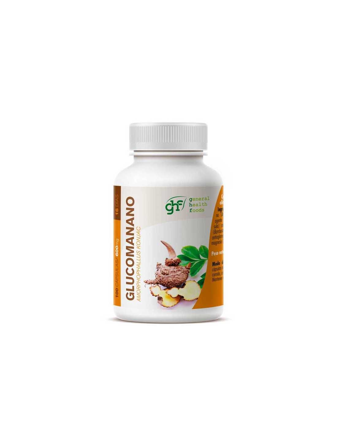 GHFPresentación y composición:Envases de 100 cápsulas vegetales de 600mg, con 500mg de glucomanano (Amorphophallus konjac) Cápsula vegetal (100mg).Propiedades:El Glucomanano o Konjac, es una fibra procedente de una planta de origen japonés, el Amorphophallus konjac. Como todas las fibras, la capacidad adelgazante de este producto se debe a su habilidad para saciar el apetito y ralentizar la absorción de otros nutrientes (como el azúcar y las grasas) El glucomanano absorbe el agua, hinchándose hasta varias veces su volumen normal, para dar la sensación de saciedad, al mismo tiempo que ralentiza el vaciado del estómago. De esta manera, se disminuirá la cantidad de alimento que se ingiera en las comidas. Además, su capacidad de ralentizar el proceso de digestión ayudará a controlar los niveles de colesterol y azúcar en sangre. Por todo esto, el glucomanano se recomienda en casos de obesidad, diabetes, hipercolesterolemia, hipertriglicemia, estreñimiento, edad avanzada.Modo de empleo:2-3 cápsulas dos o tres veces al día, media hora antes de las comidas, con un gran vaso de agua.