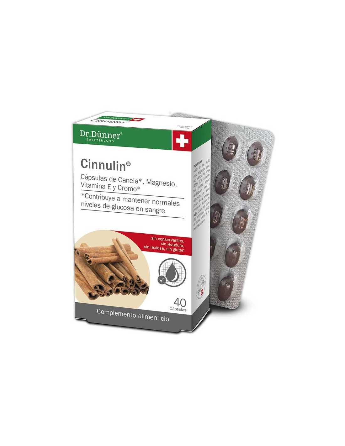 Las cápsulas Cinnulin están elaboradas a base de un extracto especial de corteza de canela de Ceilán, variedad que está exenta de cumarinas. El cromo contenido en el preparado contribuye a mantener adecuados niveles de glucosa en sangre y al normal metabolismo energético. Además la vitamina E protege las células frente al daño oxidativo.
