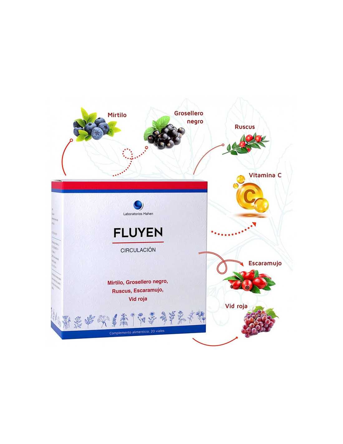 Agua, jugo concentrado de mirtilo común (Vaccinium myrtillus L.), fructosa, jugo concentrado de grosellero negro (Ribes nigrum L.), vitamina C (ácido l-ascórbico), jugo concentrado de uva (Vitis vinifera L. var. Tinctoria), extracto seco de escaramujo (Rosa Canina L.) (vitamina C), bioflavoides de limón, extracto seco de ruscus (Ruscus aculeatus L.), extracto seco de vid roja (Vitis vinifera L var. Tinctoreria), conservador (sorbato potásico).