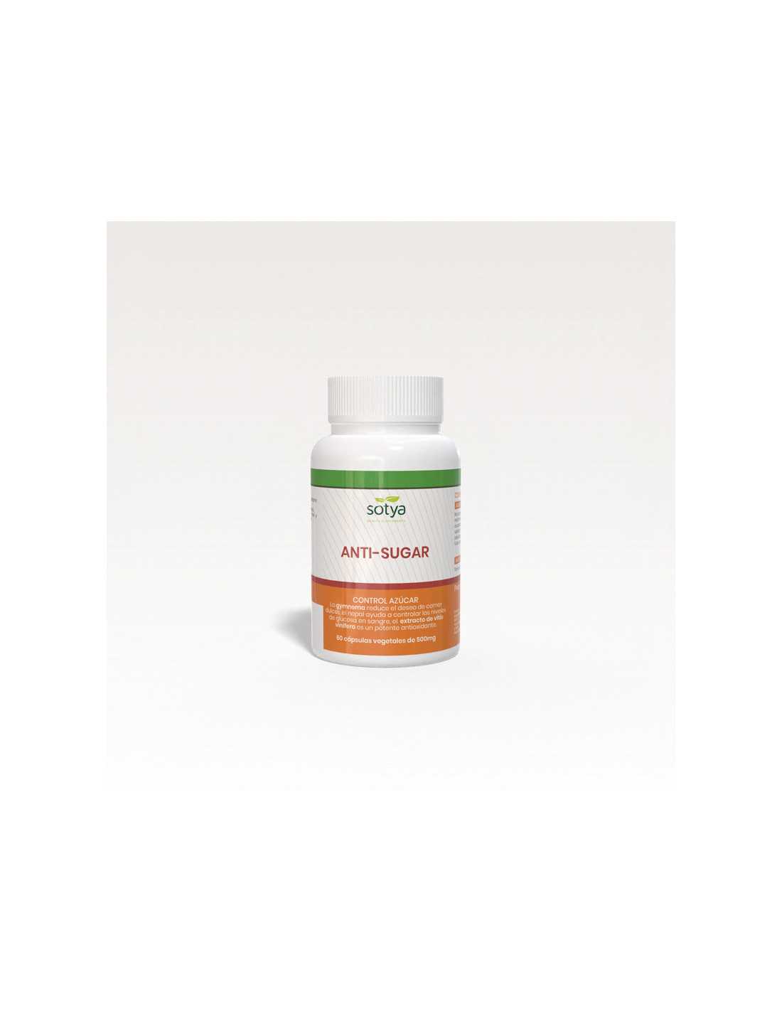 Antisugar de Sotya es un complemento alimenticio formulado para controlar los niveles de azúcar en sangre y reducir el deseo de consumir dulces. Su fórmula combina extracto de gymnema, nopal y extracto de vid roja (vitis vinifera), ingredientes que ayudan a regular la glucosa, reducir el apetito por los azúcares y proporcionar una potente acción antioxidante.
