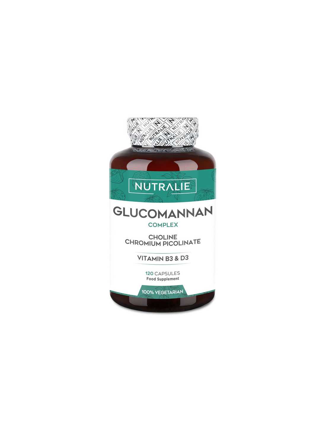 El suplemento glucomanano de Konjac, presente en nuestro Glucomanano Complex, ayuda a adelgazar cuando se sigue una dieta baja en calorías, además contribuye a mantener niveles normales de colesterol sanguíneo. El complemento alimenticio Glucomanano Complex combina la fibra vegetal del glucomanano de Konjac, propia de Asia, con bitartrato de colina, picolinato de cromo y vitaminas B3 y D3.