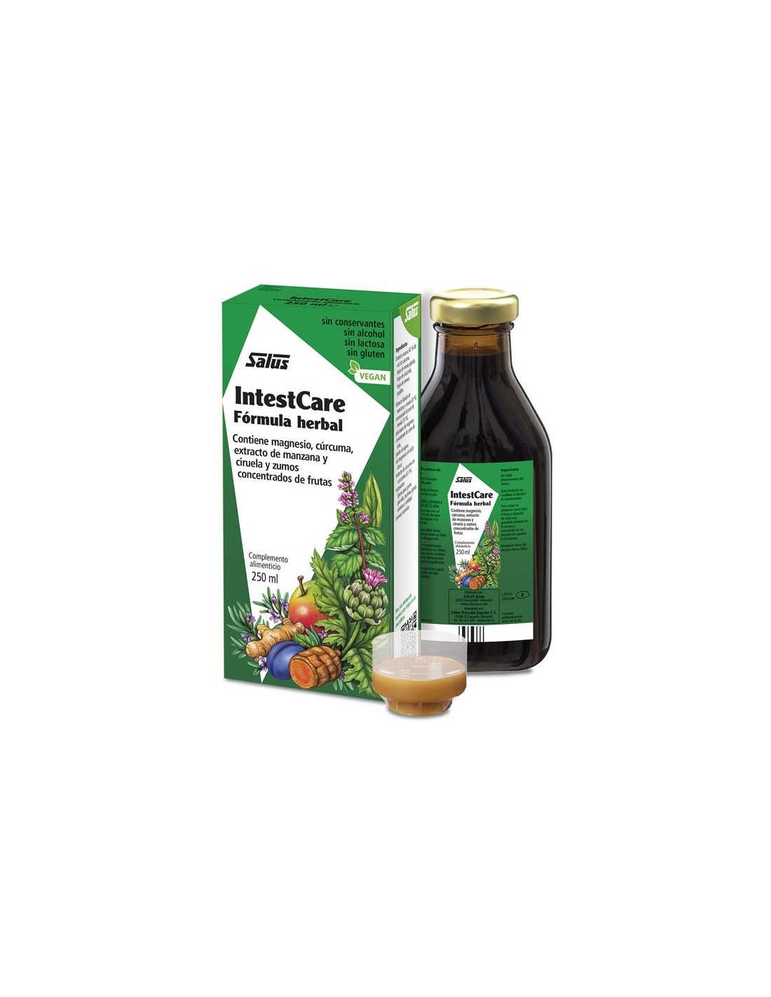 Propiedades de Salus IntestCare: El intestino tiene una gran influencia en nuestra salud y bienestar. En una vida media, unas 80 toneladas de alimentos pasan a través del intestino y es función de este órgano vital absorber todos los nutrientes de los alimentos así como tolerar sustancias nocivas y subproductos derivados del metabolismo. Es durante este proceso que nuestro intestino está sujeto a importantes tensiones, por lo que una fuente cuidada de sustancias es clave para mantener en buen estado el intestino. Contiene raíz de cúrcuma con propiedades antioxidantes. Las hojas de menta piperita y alcachofa así como el jengibre contribuyen a la función digestiva. El magnesio por su parte ayuda al normal funcionamiento de los músculos y al equilibrio electrolítico.