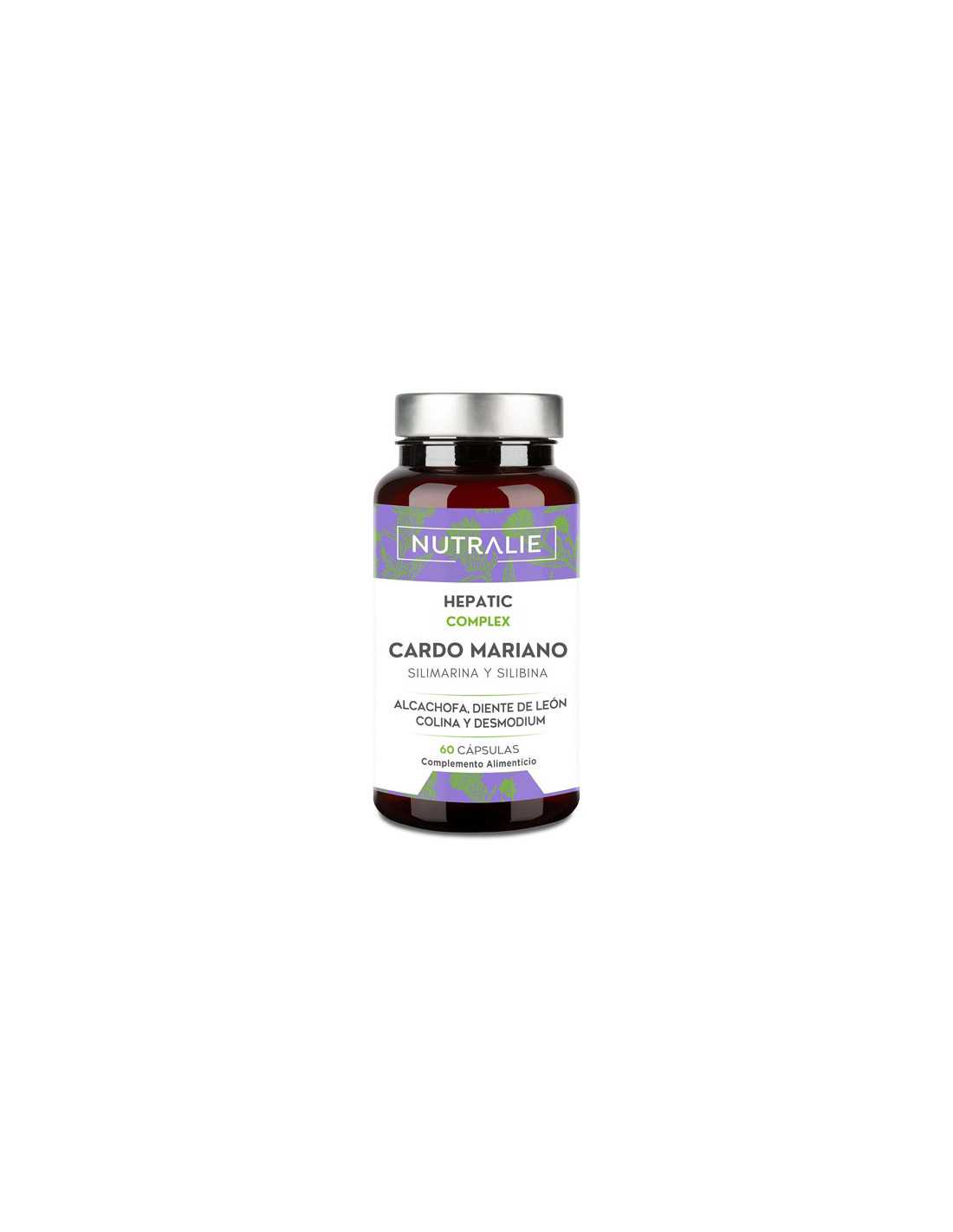 Hepatic Complex de Nutralie es un complemento alimenticio diseñado para favorecer el buen funcionamiento del hígado y la salud digestiva. Su fórmula combina extractos de cardo mariano, alcachofa, diente de león y desmodio, ingredientes tradicionalmente utilizados para proteger la función hepática, apoyar la salud de la vesícula biliar y contribuir a los procesos depurativos del organismo.
