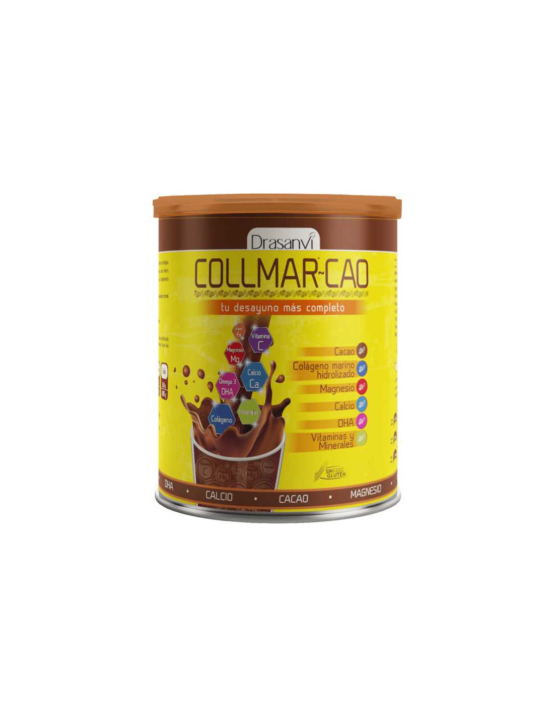 Collmar® Cao es un complemento alimenticio a base de Cacao desgrasado de procedencia ecológica, Colágeno Marino Hidrolizado, DHA, Vitaminas C, D, B1, B5, B6 y B12, y minerales como Hierro, Magnesio y Zinc.La combinación de todos estos ingredientes lo convierten en un complemento alimenticio muy completo para tomar en el desayuno.