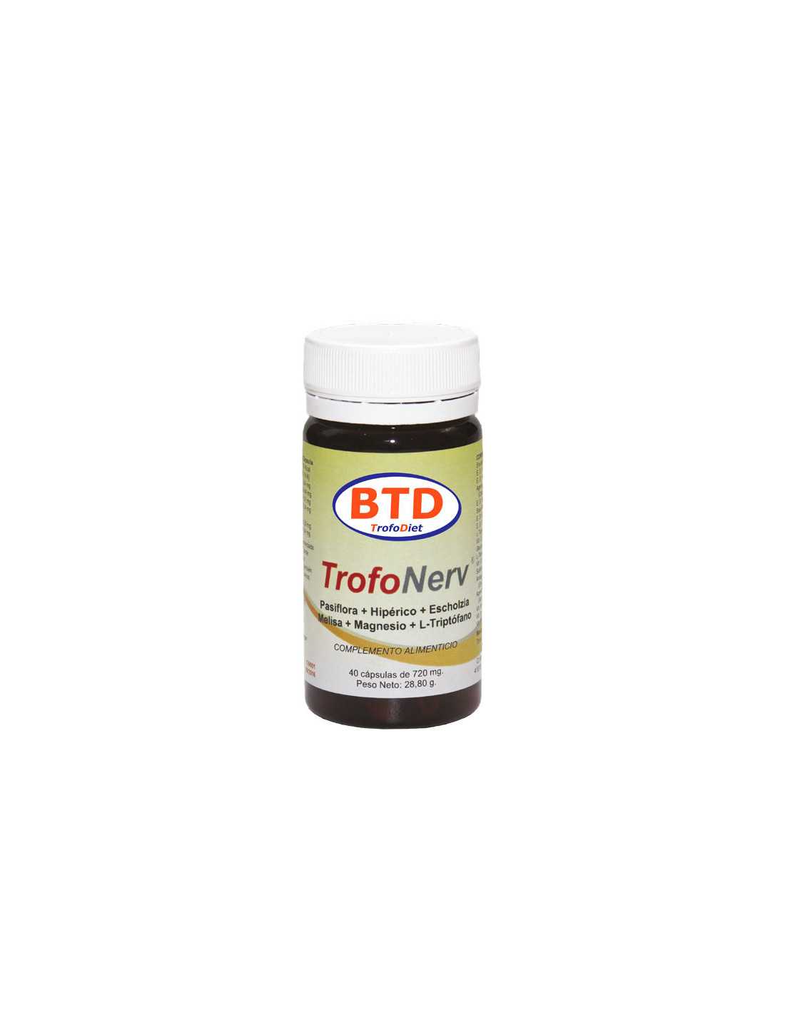 TrofoNerv de BTD es un complemento integrador fitonutricional para la relajación del sistema nervioso y los estados de ánimo.Propiedades: