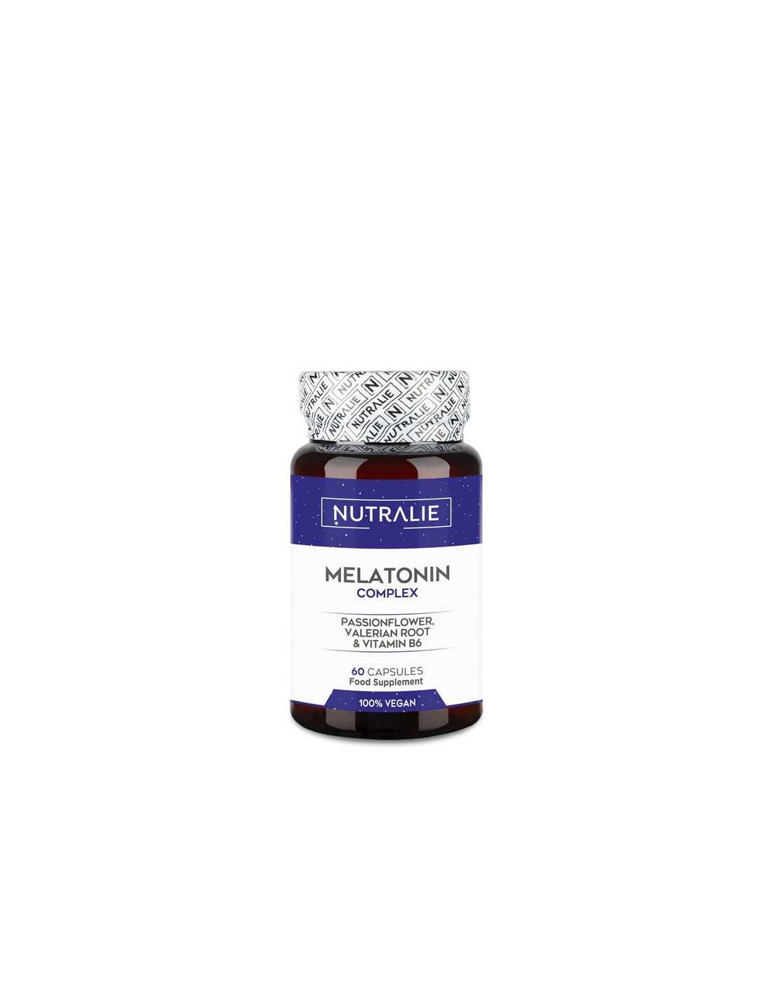 Melatonina Complex es un producto 100% natural y vegano que contiene 1,8mg de melatonina en cada dosis. Se compone también de plantas con propiedades relajantes (valeriana, passiflora, flor de tilo, melissa…), además de la vitamina B6.
