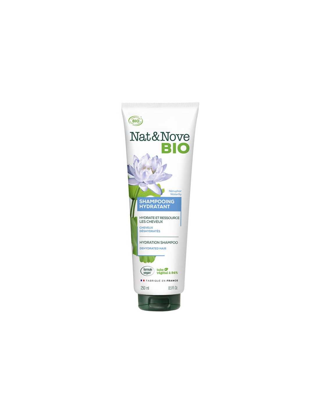 Champú hidratante de nenúfar (nymphaea alba) con certificado orgánico, para cabellos deshidratados.