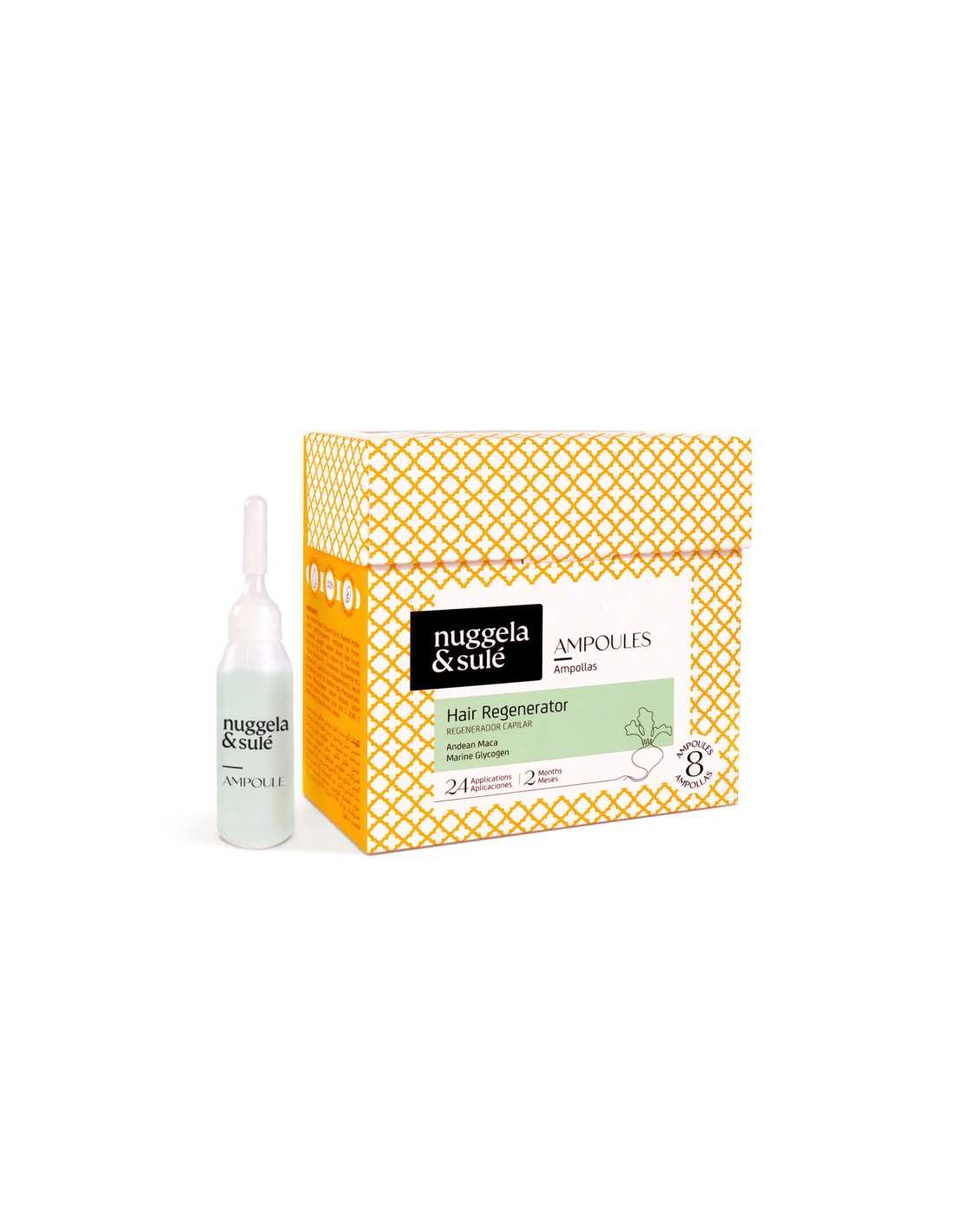 Uno de los productos más efectivos del mercado para regenerar el cabello y aumentar su volumen.El Regenerador Capilar de Nuggela & Sulé es un potente cóctel de activos, vitaminas y oligoelementos, fortalecidos con raíz de Maca Andina, uno de los mayores revitalizantes de la naturaleza, que actúa originando la regeneración capilar aumentando hasta un 30% la densidad de cabellos y a la vez su grosor. EL MÁS POTENTE DEL MERCADO: