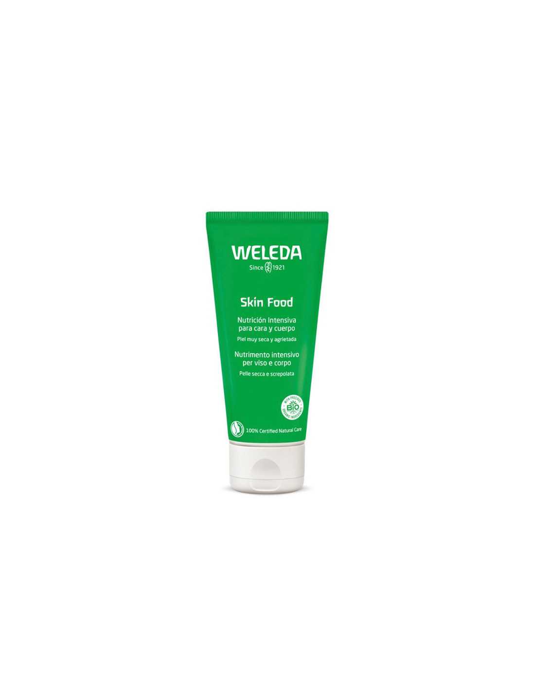 La crema Skin Food de Weleda es un tratamiento reparador intensivo para pieles secas, agrietadas o irritadas. Formulada con aceites vegetales y extractos biológicos de plantas medicinales como pensamiento silvestre, manzanilla y caléndula, esta crema nutre, regenera y calma la piel, proporcionando alivio inmediato y duradero. Es adecuada para manos, pies, codos, labios y otras zonas con sequedad extrema.