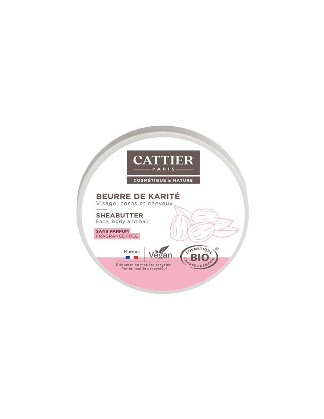 La manteca de karité 100% orgánica de Cattier nutre e hidrata intensamente la epidermis. Previene la sequedad cutánea, favorece la renovación celular, suaviza y protege la piel de las agresiones externas.