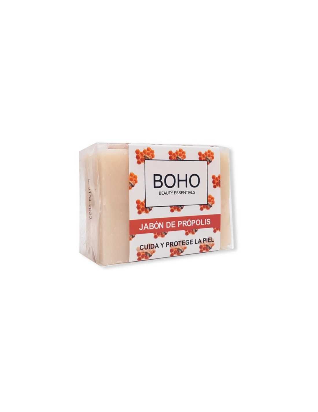 Pastilla de jabón de propoleo con efecto antiséptico, antibacteriano, antinflamatorio, cicatrizante. El jabón de propolis se utiliza para el tratamiento de pieles problemáticas, con acné, hongos, dermatitis, psoriasis y/o eccemas.
