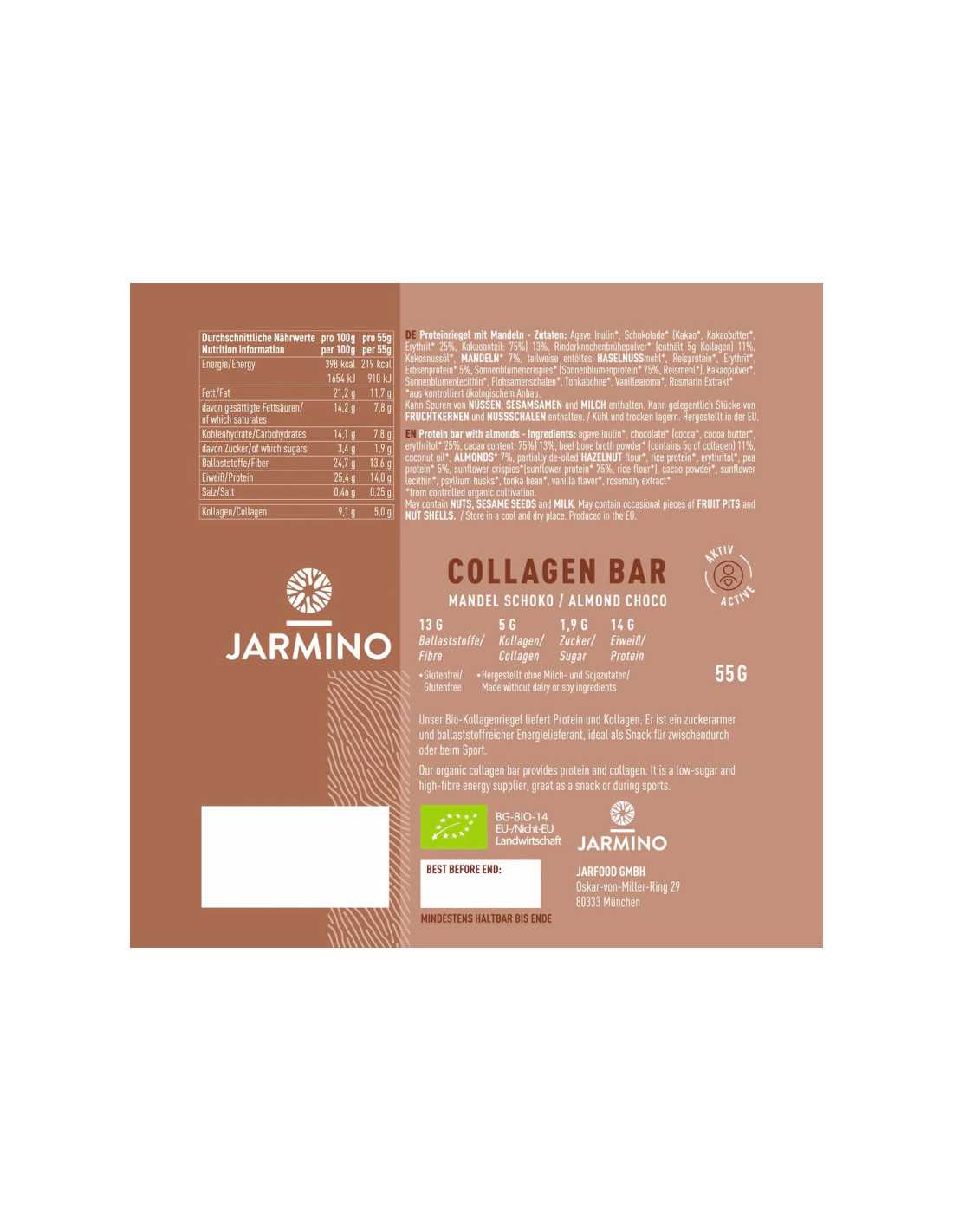 Barrita de Colageno Almendra y Cacao BIO 12x55g Jarmino