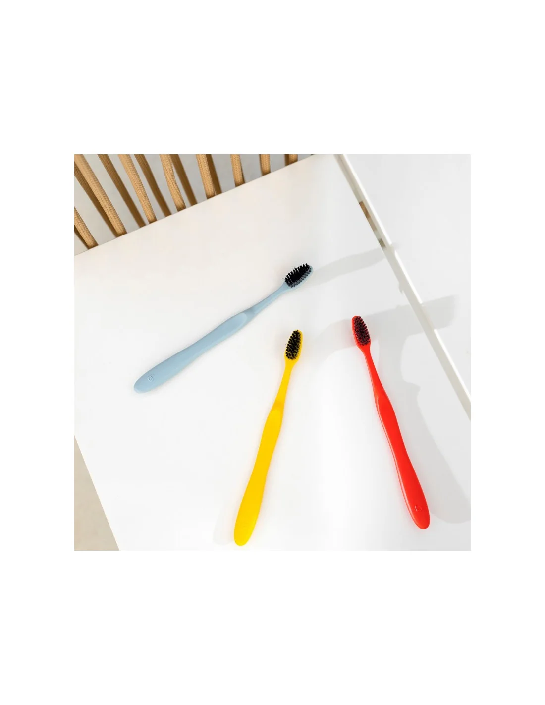 Cepillo dental sostenible con filamentos a base de plantas y mango reciclado y reciclable. Disfruta de un cepillo dental sostenible que contribuye a la reducción de residuos plásticos.