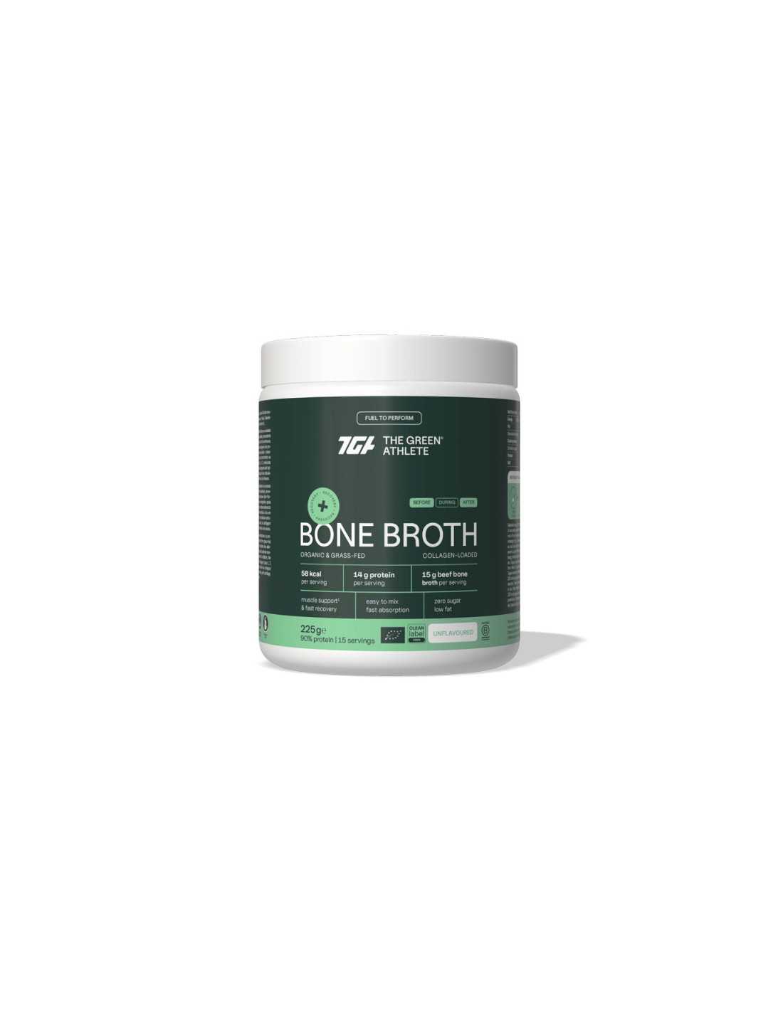 El Caldo de Hueso de Res Bio de Green Athlete es un aislado de proteína premium procedente de vacas alimentadas con pasto en Escandinavia. Con un 90% de proteína y libre de alérgenos, es una excelente fuente de proteínas completas y colágeno natural tipo 1, 2 y 3, fundamentales para la salud del tejido conectivo, articulaciones y músculos.