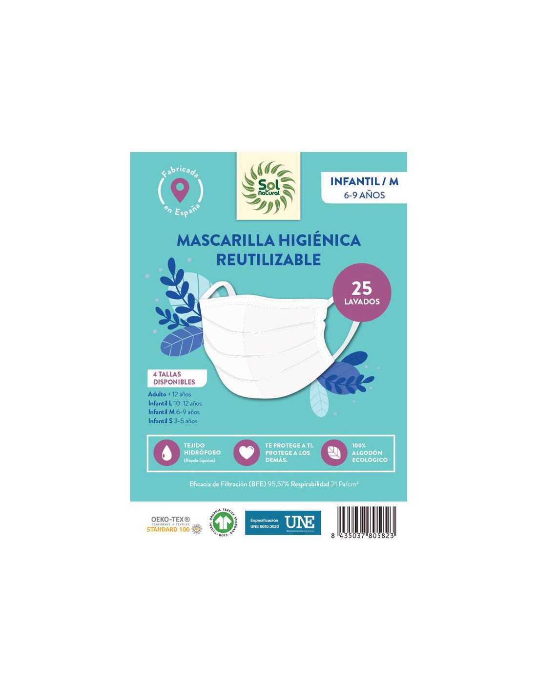 Sol NaturalMASCARILLA ALGODON ORGÁNICO REUTILIZABLE INFANTIL/M SOL NATURAL