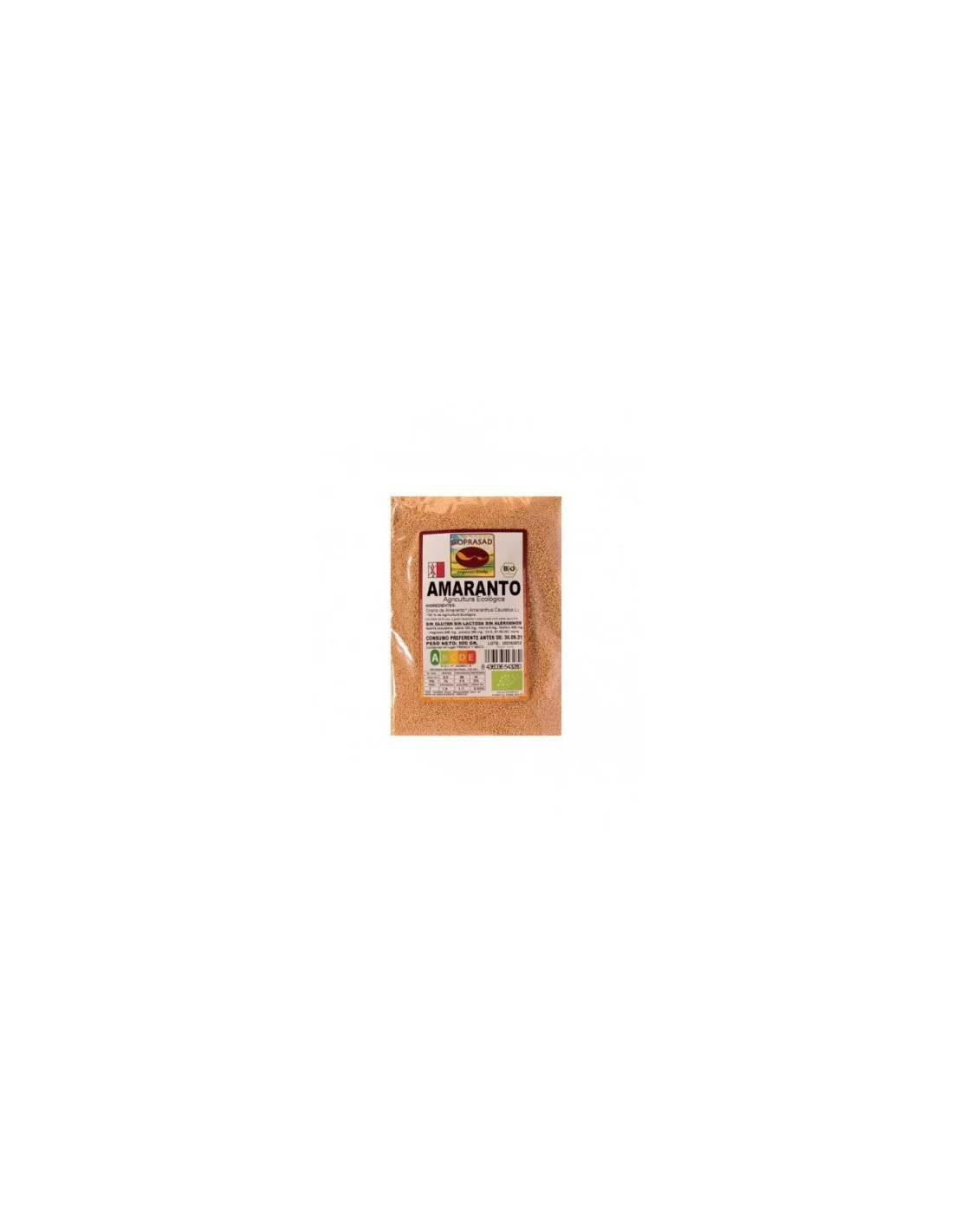 Amaranto Grano Bio 500gr Bioprasad es un producto elaborado a base de amaranto sin gluten, diseñado especialmente para aportar proteínas, grasas, calcio, fósforo, hierro y magnesio. Aporta proteínas, grasas (escualenos), calcio fósforo, hierro, magnesio, vit A, B1, B2, B3, lisina. Una harina ideal para quienes son intolerantes a alimentos con gluten. Tiene grandes cantidades de tocotrienol, una forma de vitamina E que podría ayudar a disminuir los niveles de colesterol. MODO DE USO: Se recomienda una cocción de 25/35 minutos a partir de ebullición. 1 vaso de cereal x 2,5 vasos de agua fría.